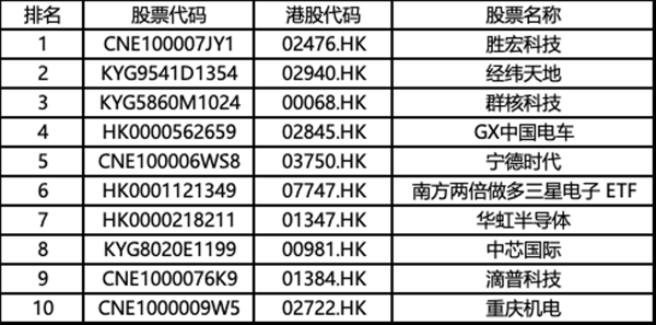 SEIbro数据平台显示, 胜宏科技 位居韩国投资者港股净买入第一名,紧随其后的还有 经纬天地 、 群核科技 ,以及GLOBAL X中国电动车及 电池 ETF、 宁德时代 等 新能源 相关品种。此外, 半导体 板块同样获得韩国资金青睐, 华虹半导体 和 中芯国际 均进入净买入榜前十。