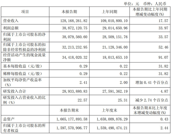 现金流方面,龙迅股份经营活动产生的现金流量净额 0.34 亿元,同比增长 91.07%,现金回款能力大幅增强。每股收益指标同步提升,基本每股收益与稀释每股收益均为 0.29 元 / 股,较上年同期增长 31.82%;加权平均净资产收益率 2.41%,较上年同期增加 0.41 个百分点。