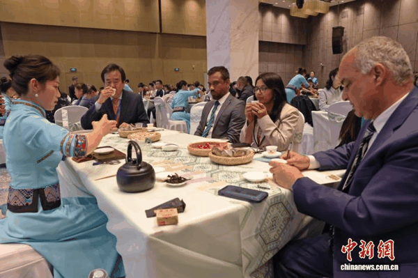 中外茶界人士在湖北利川品尝“利川红”。董晓斌 摄