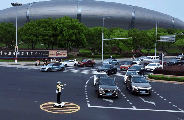 今年年初,墨甲交警机器人 “芜优”智警R001 已在安徽芜湖正式投入执勤,参与城市路口 交通管理;开学季机器人还在芜湖银湖小学护学岗开展交通安全辅助工作。