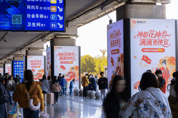 其中,滴滴在洛阳龙门站落地全套古风设计的滴滴车站,为城市文旅增添新色彩。抵洛游客在洛阳各大火车站等点位,可根据标识和滴滴App步行引导前往“滴滴网约车上车点”,候车厅为候车乘客提供专属避雨和休息空间。