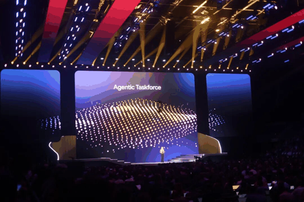 Kurian 在台上说:「试点时代结束了,智能体时代已经到来。真正的力量源自它如何改变你的工作流程。」