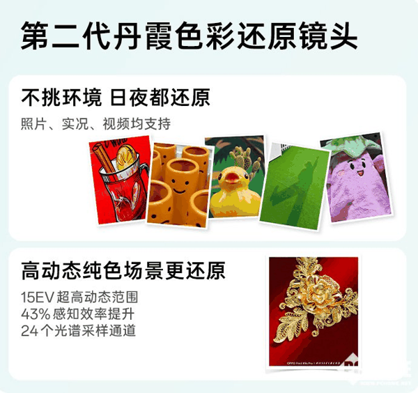同时,色彩还原能力不再局限于静态拍照,Find X9s Pro将其拓展至动态实况照片乃至视频拍摄,实现全场景精准色彩还原。依托全新架构升级,第二代丹霞色彩还原镜头功耗大幅降低80%,可在各类拍摄模式下低功耗稳定运行。