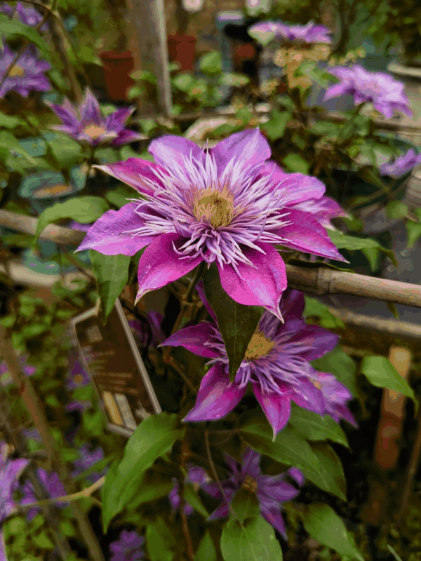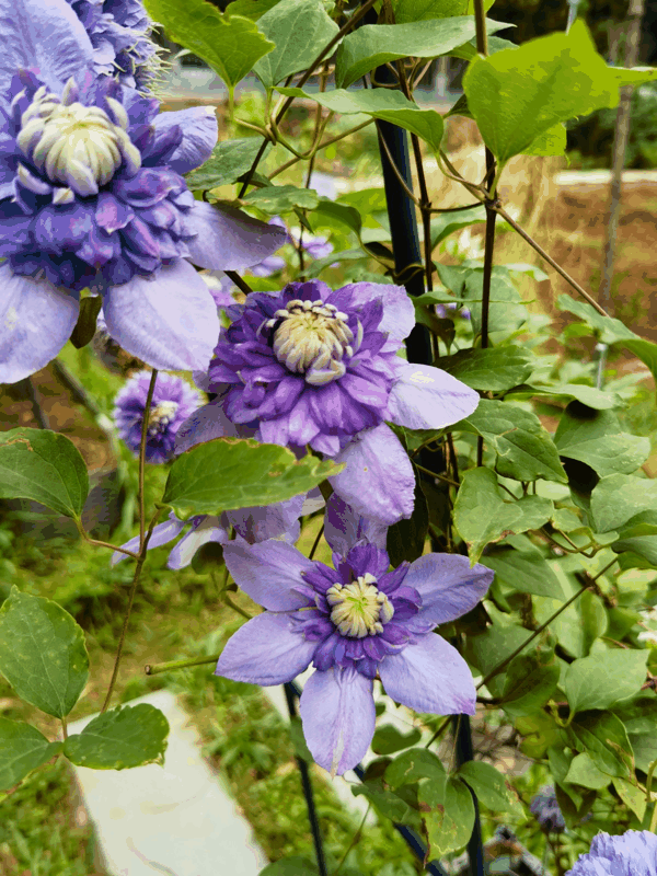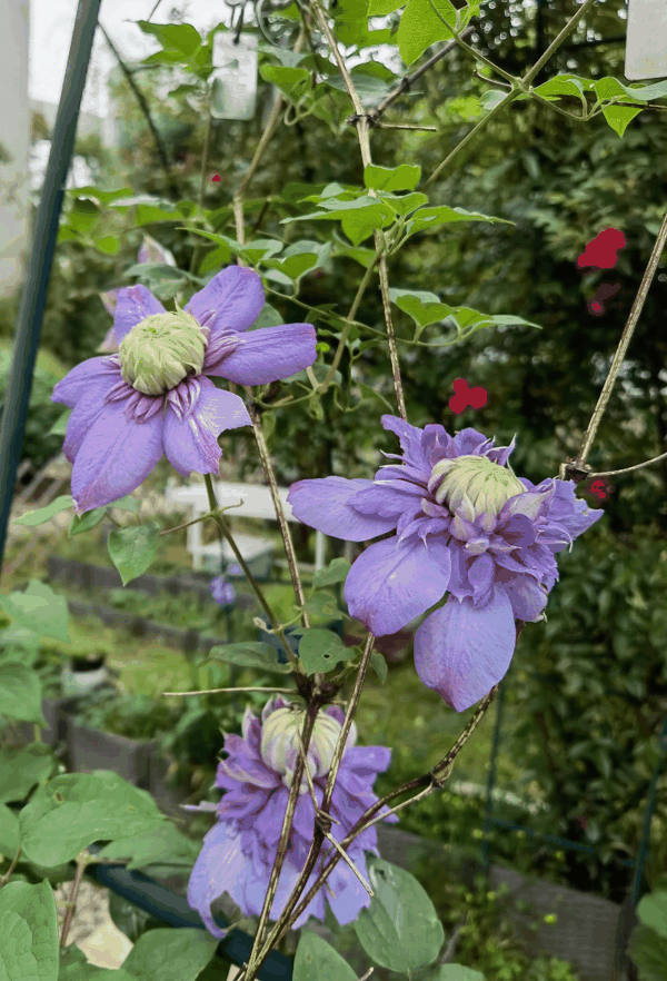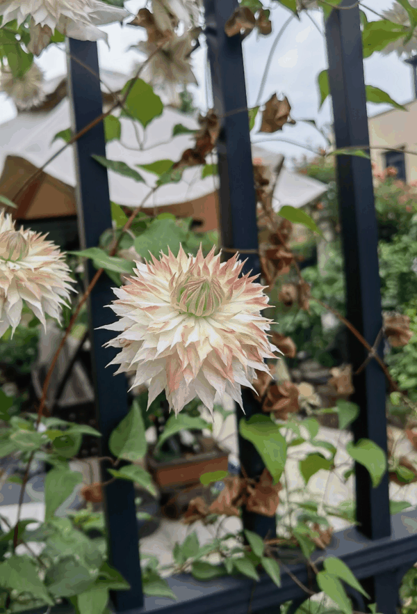 铁线莲园艺品种众多 ,花朵姿态优美、形态多样和颜色丰富,有“ 藤本皇后 ”的美誉。需要注意的是,其主要观赏部位——“花瓣”, 并非是真正花瓣,而是由萼片发生瓣化而来 (萼片瓣化形态在不同园艺种中差异较大),故铁线莲 没有真正的花瓣 ‌ 。除“单瓣”品种外,还常见 “重瓣”铁线莲 ,其“花瓣”数目众多,一般是 外面“花瓣”较大 , 内轮“花瓣”较小 ,且数目更多。内轮的“花瓣”是啥?研究表明,重瓣品种除萼片 花瓣化 外,其 全部雄蕊也发生瓣化 (白色或淡绿色, 较外轮萼片短 ),故使其整个花朵看起来更加漂亮、更加壮观。