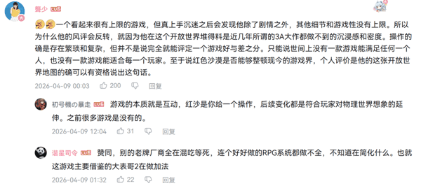 上周,《耻辱》系列和《死亡循环》的设计师Dingu Bakaba发了一条推,说《红色沙漠》越玩越上头:大多数开放世界游戏遵循一个固定的节奏——开头让你觉得惊艳,然后逐渐看到套路,看到重复,看到设计者留下的痕迹。