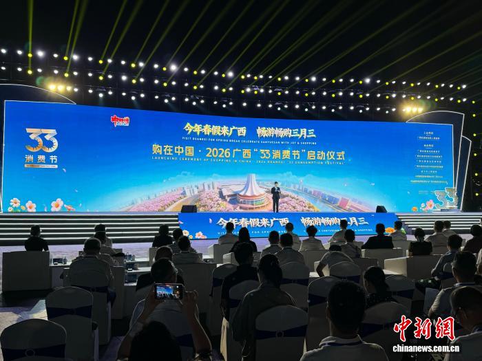 中新网 南宁4月16日电 (林洁琪 林浩)4月15日晚,购在中国·2026广西“33消费节”启动仪式在南宁市举行。本次活动精心打造“享畅行、赏美景、观演艺、看赛事、品美食、购好物”六大板块26项特色主题超过1000场次活动,邀请全国游客来广西畅游畅购。