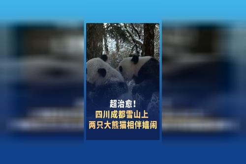 超治愈!四川成都雪山上 两只大熊猫相伴嬉闹