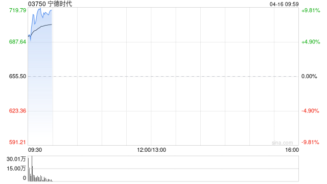宁德时代(03750)早盘高开逾7%,截至发稿,股价上涨7.40%,现报704港元,成交额8.24亿港元。
