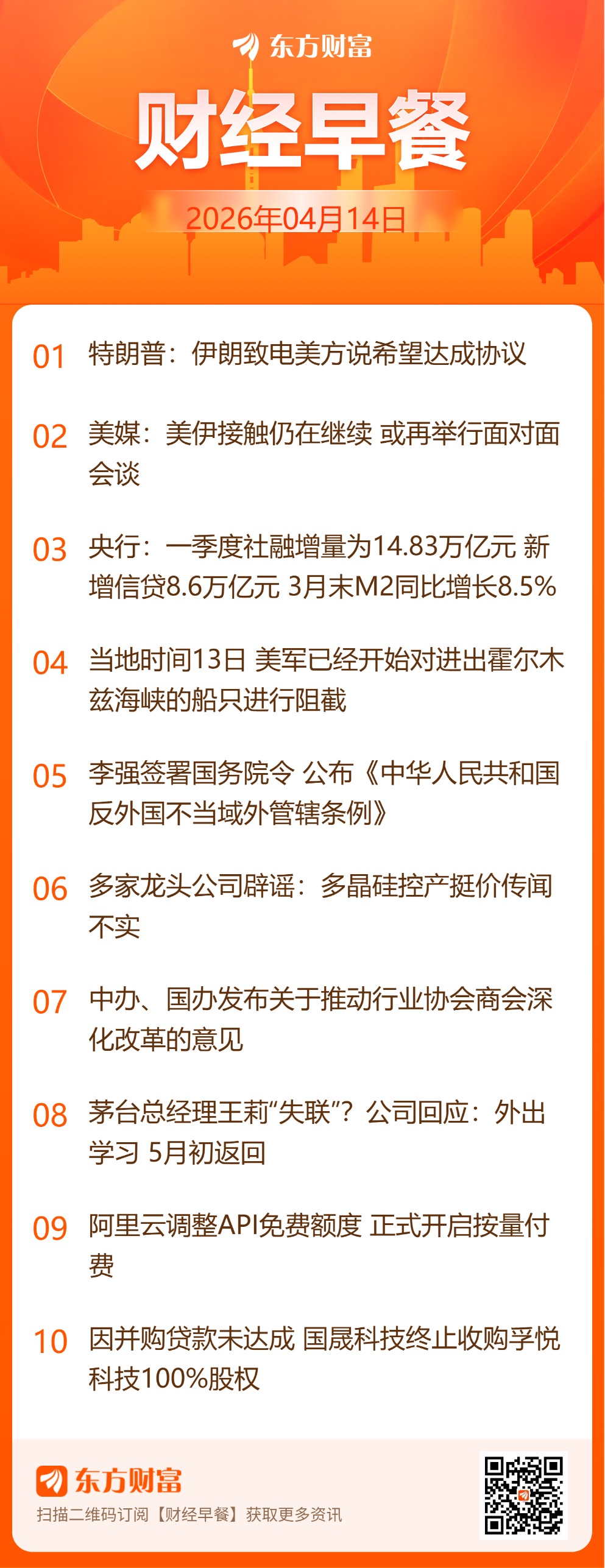 国内期货: 4月13日,国内商品期货收盘,互有涨跌。多晶硅主力合约涨停,碳酸锂涨超5%,原油、LU燃油等涨逾3%,沪 镍 、工业硅等涨超2%,沪铜、 铁矿石 等涨超1%, 纯碱 、热卷等小幅上涨;烧碱跌超3%,BR 橡胶 跌逾2%,生猪、棉纱等跌超1%,沪锌、乙二醇等小幅下跌。