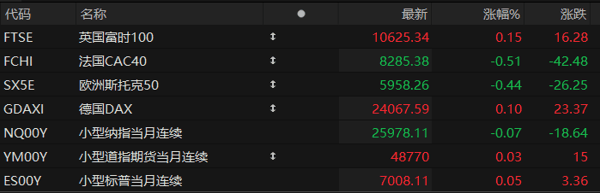 周三盘前,美股三大股指 期货 震荡盘整,欧洲主要指数涨跌不一。截至发稿, 纳斯达克 100指数 期货 跌0.07%,道指 期货 涨0.03%,标普500指数期货涨0.05%。个股方面,明星科技股盘前涨跌不一, 博通 涨近3%, 阿斯麦 跌超1%。