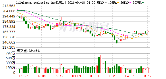 尽管调查事项出现后Lululemon股价未出现大幅波动,但Wind数据显示,截至2026年4月18日,公司股价报167.28美元,较2025年12月的阶段性高点累计下跌25.98%;若与2023年12月的阶段性高点相比,跌幅更是达到67.61%。