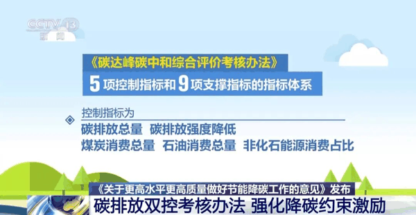 就在《关于更高水平更高质量做好节能降碳工作的意见》发布后不久,《碳达峰碳中和 综合 评价考核办法》也对外公布,这也让碳排放双控有了目标考核的“指挥棒”。