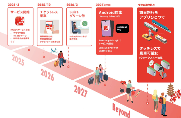 未来,访日旅客可使用海外发售的三星 Galaxy 手机, 入境日本后无需前往售票机或人工窗口 , 只需要刷手机就能使用铁路 、 公交等交通工具并进行小额购物支付 ,旅行更加方便。