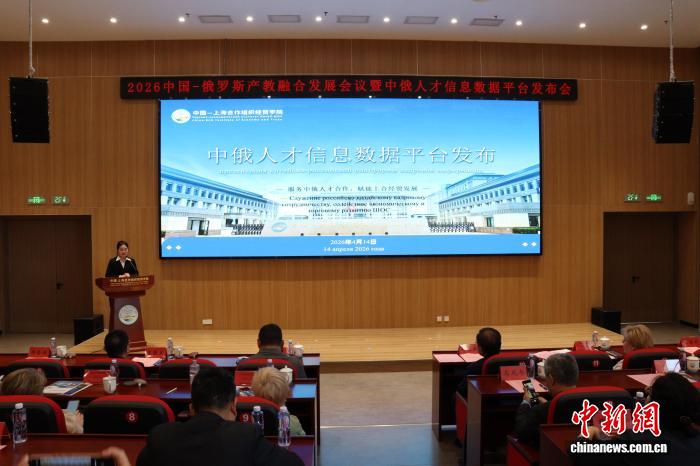 中新社 青岛4月14日电 (王禹)2026中国—俄罗斯产教融合发展会议暨中俄人才信息数据平台发布会14日在中国—上海合作组织地方经贸合作示范区(简称“上合示范区”)举办,中国—上海合作组织经贸学院现场正式发布中俄人才信息数据平台。