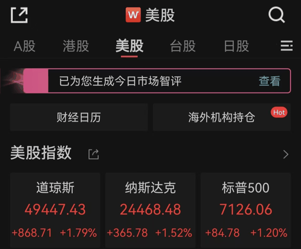中新经纬4月18日电 美东时间周五,美国三大股指全线收涨。截至收盘,道指涨1.79%报49447.43点,标普500指数涨1.2%报7126.06点,纳指涨1.52%报24468.48点,录得13连涨;标普500指数、纳指续创新高。