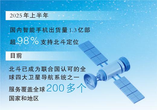 如今,北斗产业已实现从无到有、从有到优的跨越式发展。产业链上游,多款国产北斗芯片在性能和功耗方面达到国际先进水平,自主可控能力显著增强。在终端层面,2025年上半年,国内智能手机出货量1.3亿部,超98%支持北斗定位,产业基础更加坚实。