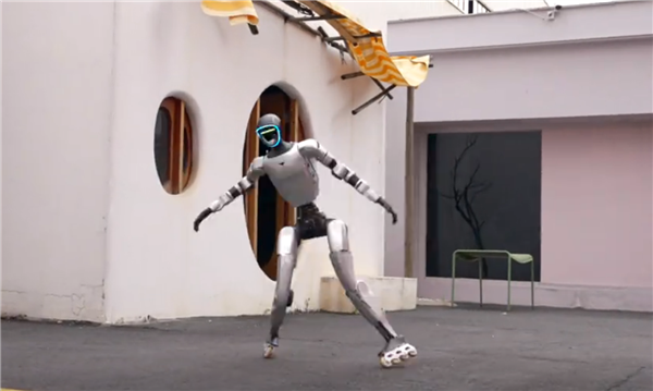 画面显示, 该机器人能够流畅完成滑冰、轮滑等动作,实现360度转身、单足转圈及前空翻等高难度动作。