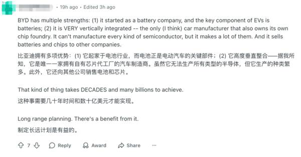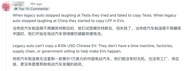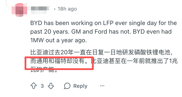 更加离谱的是,美国网友一边反思自身,锐评通用和福特等美国巨头,一边还在猛夸中国公司, 一个劲儿地替比亚迪辩经 ,说比亚迪好,赞比亚迪美,而且分析得头头是道,不知道的以为人这会儿就在深圳。