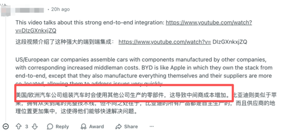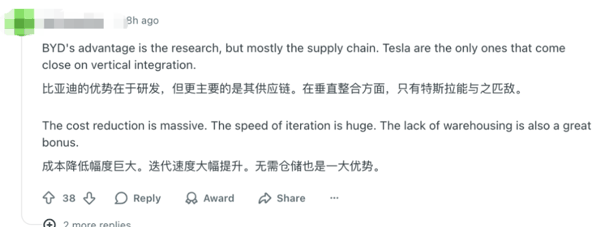 另一方面,双方不仅是技术上有代差,还有了解比亚迪的网友指出,其实传统巨头连生产方式都落后了。