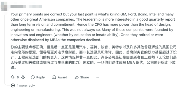 有网友从源头找答案,认为不是美国车企本身不行,而是 “土壤”有问题 ——美国车企缺少官方政策支持。
