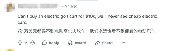 1万美元连高尔夫电动版都买不到。 咱们永远也看不到便宜的电车了 。