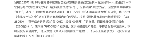 好想来方面回应消费者称,该酸奶饮品表明产品名称为:酸奶饮品,产品类型:发酵型含乳饮料,整个产品标签未提及酸奶的字样。
