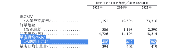 万辰集团提交的港股招股书显示,2025年门店的月均销售额(GWV)38万元,相比2024年的41万元下滑了。尽管万辰集团解释称,2025年的单店月均GMV在2025年下半年有所改善,由2025年上半年的约37万元增至2025年下半年的约39万元,但整体仍未恢复至此前水平。
