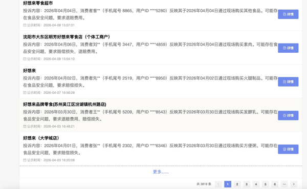 全国12315消费投诉信息公示平台上,近一年来好想来关于 食品安全 的投诉共有3819条。