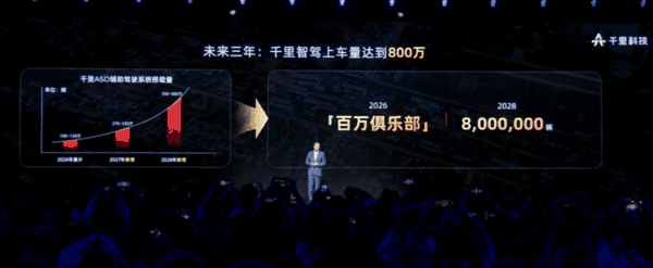 在千里科技AI战略暨产品发布会上,赵明连续官宣了多项布局。比如,千里智驾2028年挑战800万辆装车量,目标成为全球最大的智能驾驶供应商之一。