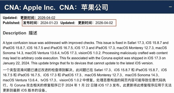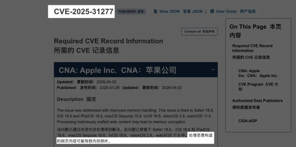 拿上面攻击石油老哥的5个漏洞来举例,其实苹果从25年7月就开始修了,先干掉的就是内存相关的漏洞,后面的几个基本是隔了两三个月才慢慢补上的。