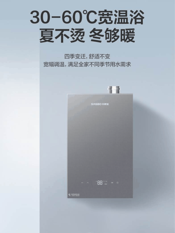 更搭载节能四季感模式,自动调整燃气供给量,无需手动反复调温,即可实现四季动态控温,在精准恒温的同时最大化节省燃气,让舒适与节能兼得,彻底告别水温波动、调温繁琐、燃气浪费的多重烦恼,为全家打造省心、舒适、节能的全场景热水体验。