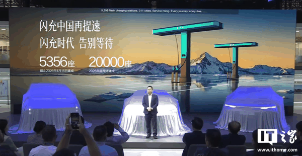 IT之家 4 月 24 日消息,在今日的比亚迪海洋网 2026 北京国际车展发布会上,比亚迪宣布,截至 2026 年 4 月 16 日, 已建成 5356 座汽车闪充站,预计年底建成 2 万座闪充站 。