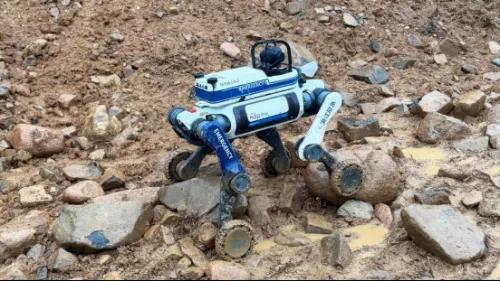 AI防汛勇士(云深处四足机器人)在碎石路段通行