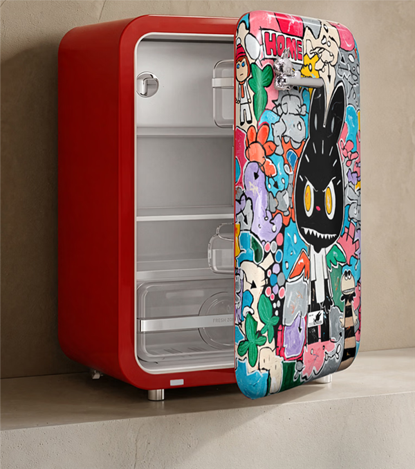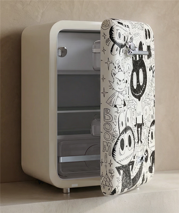 设计方面,LABUBU冰箱采用多层精密套印工艺,通过色彩层层叠加,还原THE MONSTERS艺术家龙家升原作的笔触神韵与质感。