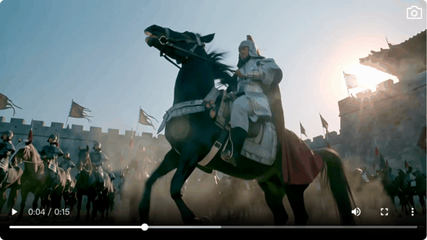 HappyHorse 1.0 在生成的视频里,则是像一个懂行的摄影指导,各种大师级运镜,从全景到近距离跟拍马蹄的扬尘,再流畅切换到低角度仰拍拔枪的瞬间。