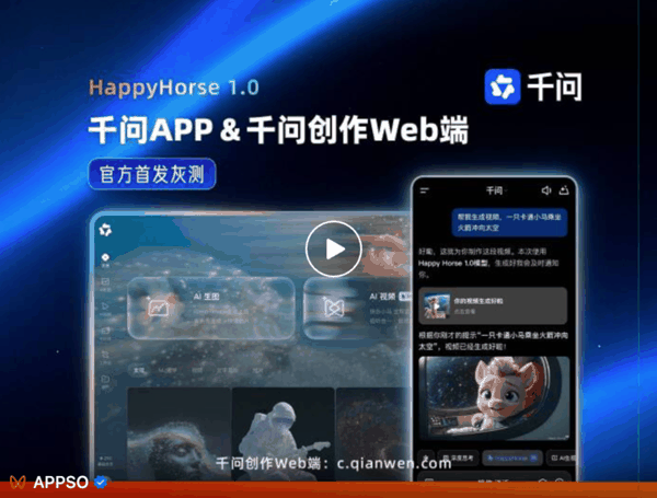 今天,阿里公布了 HappyHorse 1.0 的体验渠道,千问官方首发灰测,千问 APP 和千问创作Web端都能直接使用。