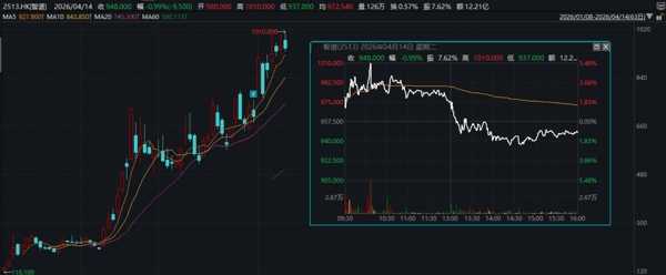4月14日,港股上市公司 智谱 盘中最高价再度超过1000港元,最高一度达1010港元。此前一个交易日, 智谱 股价盘中首度突破1000港元,引起市场广泛关注。