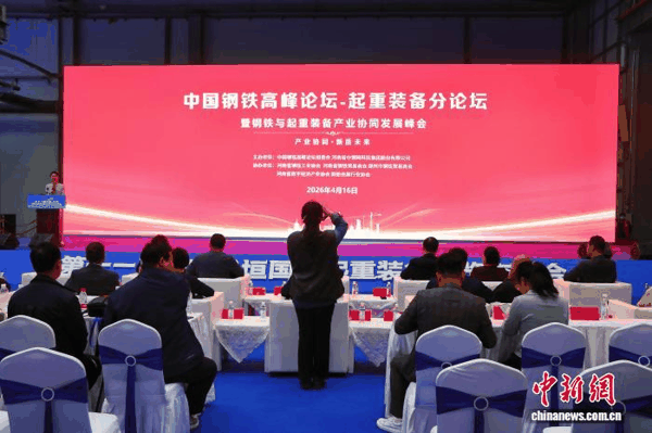 中新网 新乡4月17日电 (李海珠)16日,中国钢铁高峰论坛·起重装备分论坛暨钢铁与起重装备产业协同发展峰会在河南长垣启幕,来自钢铁产业与起重装备产业的专家学者、企业代表等齐聚“起重机械之都”长垣,共谋高端化、智能化、绿色化产业协同发展新路径。