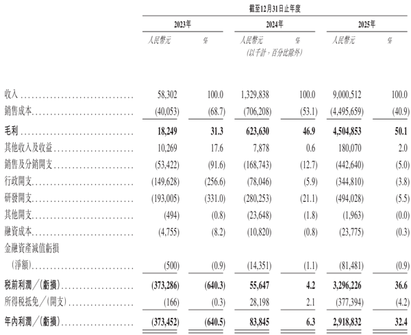 在法律风险之外,思格新能的财务报表呈现出一种近乎“魔幻”的跳跃式增长。2023年营收仅为5830万元,到了2025年便狂飙至90.01亿元。短短两年时间,营收增长超过154倍,净利润也从亏损3.7亿元扭转为盈利29.19亿元。