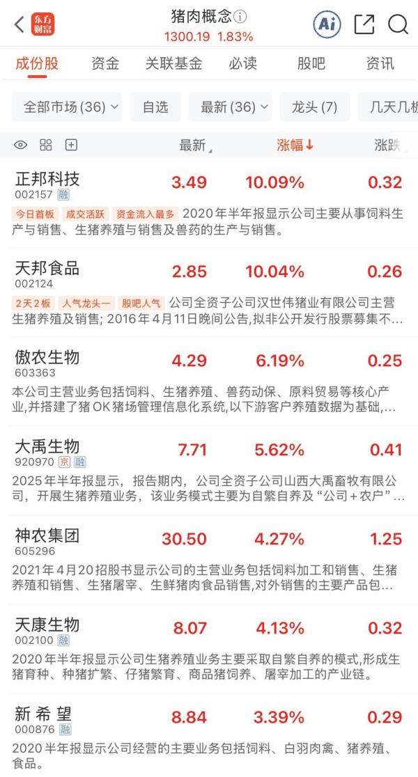 期货率先反弹!生猪主力合约涨超1%猪肉概念再度大涨