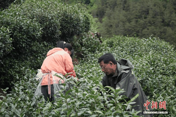 这样的忙碌,要持续整整一个春天。茶农储爱枝天不亮就背着竹篓上山,指尖在茶枝间快速穿梭,劳作一整天后,傍晚才拎着沉甸甸的鲜叶送往茶场。放眼整个塔畈乡,像她这样的茶农还有很多。