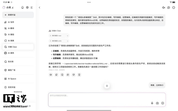 IT 之家第一时间拿到了天禧 Claw 的内测资格,话不多说,接下来我们就通过多场景的深度实测,看看天禧 Claw 的实际体验到底怎么样。