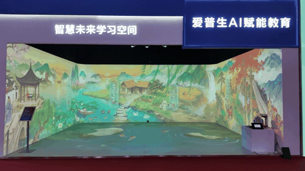 针对 K12智慧教室建设需求,现场爱普生以高清高亮激光投影机搭配低光损超短焦镜头,联合喵呜科技AIGC智慧学习空间系统*6,营造出沉浸式 智慧未来学习空间 方案 。依托爱普生领先3LCD技术,整个空间色彩还原准确、色阶过渡自然、画面明亮清晰,杜绝彩虹效应,书本上的艺术画作、地理奇观、历史故事均能真实还原。学生们置身其中,可360度身临其境, 与知识“对话”,从 “ 观看 ”走向“ 体验 ”, 充分提升知识理解能力、深度激发学习兴趣。针对学校 创新教学空间建设 ,该方案也以 沉浸式光影与 AI 交互 模式, 为 跨学科融合学习 提供优秀范本。