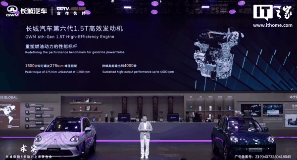 欧拉 5 燃油版搭载长城汽车 第六代 1.5T 高效发动机 及长城汽车第三代双离合变速器,1500 转即可爆发 275N.m 峰值扭矩,持续高能输出到 4000 转。