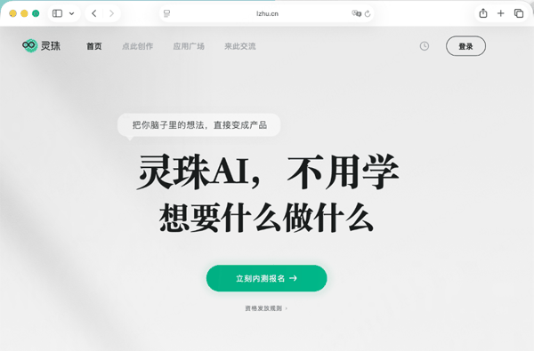 灵珠页面显示,这是一个零门槛的AI创作平台:只需在网页中输入创意想法,喝杯咖啡的时间,即可生成可实际操作的产品,如小应用、游戏、PPT、海报及旅游攻略等。据悉,此次内测,用户可通过登录灵珠官网(lzhu.cn)申请邀请码,体验“把你脑子里的想法,直接变成产品”。