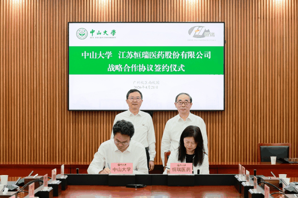 4月21日,中山大学与江苏恒瑞医药股份有限公司(以下简称恒瑞医药)在广州签署战略合作协议。根据协议,双方将聚焦肿瘤、自身免疫、代谢性疾病、抗感染、RNA疫苗等前沿领域,共同构建“基础研究-技术攻关-产业转化”全周期科技创新链条。
