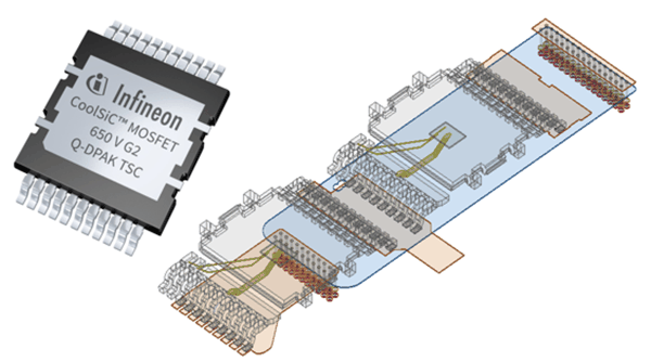 功率电子技术正在快速革新,新型材料和先进封装技术不断推动效率提升,并使更高功率密度成为可能 。 推动革新的关键因素之一,是先进封装技术的集成,例如: 英飞凌 的顶部散热(Top-Side-Cooled, TSC)Q-DPAK封装(见图1)。这类封装通过将散热路径与电气路径分离,显著提升了 功率转换器 的性能。 传统上,硅基MOSFET和 碳化硅MOSFET (如CoolMOS™和CoolSiC™)在功率转换领域一直占据主导地位,而如今,顶部冷却技术的优势已在硅基及碳化硅功率器件中得到广泛验证。该技术可提升能效、实现更快开关速度,并支持器件在更高温度下稳定运行。