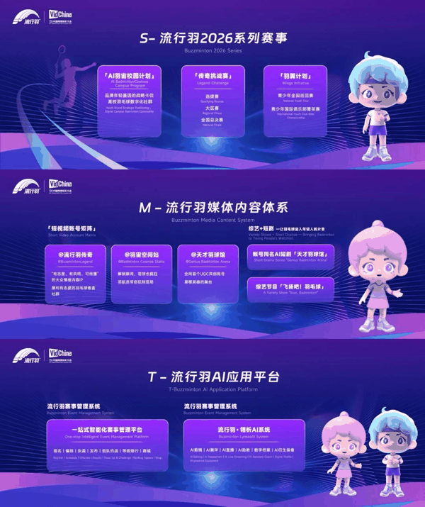 在体育赛事端(Sport),流行羽在2026年构建了“人人有舞台”的立体赛事网络:涵盖三级赛事、灵活定制的“传奇挑战赛”;包括全国巡回赛及国际俱乐部菁英赛、专为7-17岁青少年设计的羽翼计划;以及用数字化社群链接大学生的“AI羽宙校园计划”。