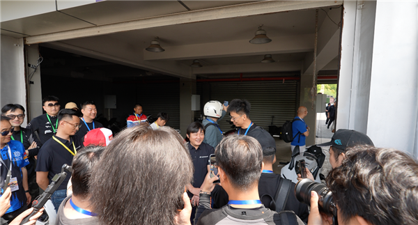 这是张雪参加的一场由懂车帝趣玩车策划的赛车活动。在安全指导下,他与现场摩托车爱好者在专业赛场进行试骑。