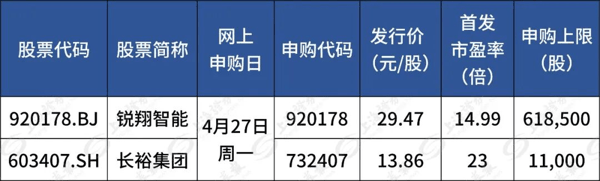 据目前安排,若无变化,下周(4月27日至30日)有2只新股可申购,分别为沪市主板1只和北交所1只。